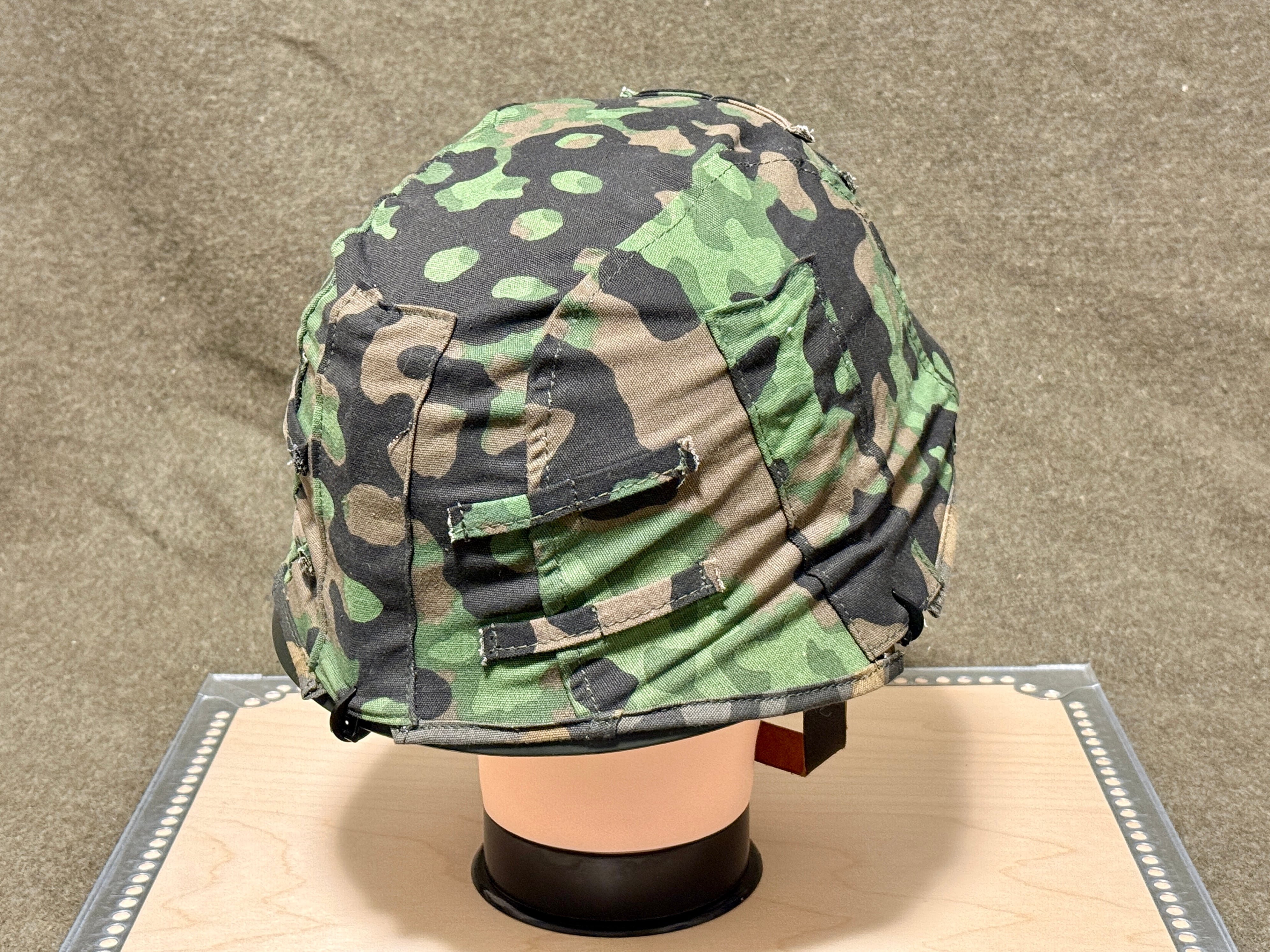 第二次世界大戦ドイツ軍プレーンツリーカモヘルムカバーのリプロダクションモデル。