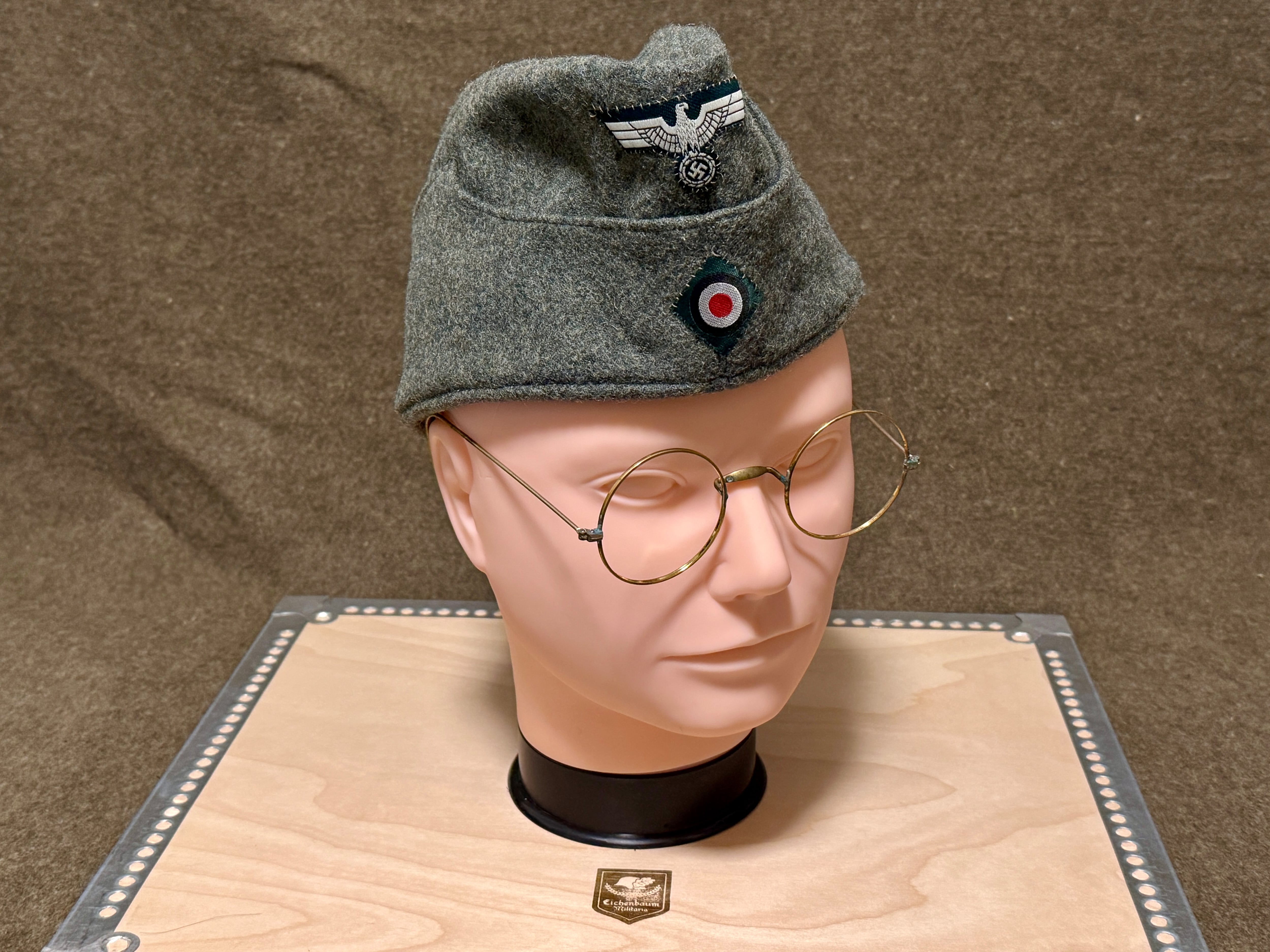 第二次世界大戦中に多くみられたノーズパットが無く、つるがスプリングのタイプです。