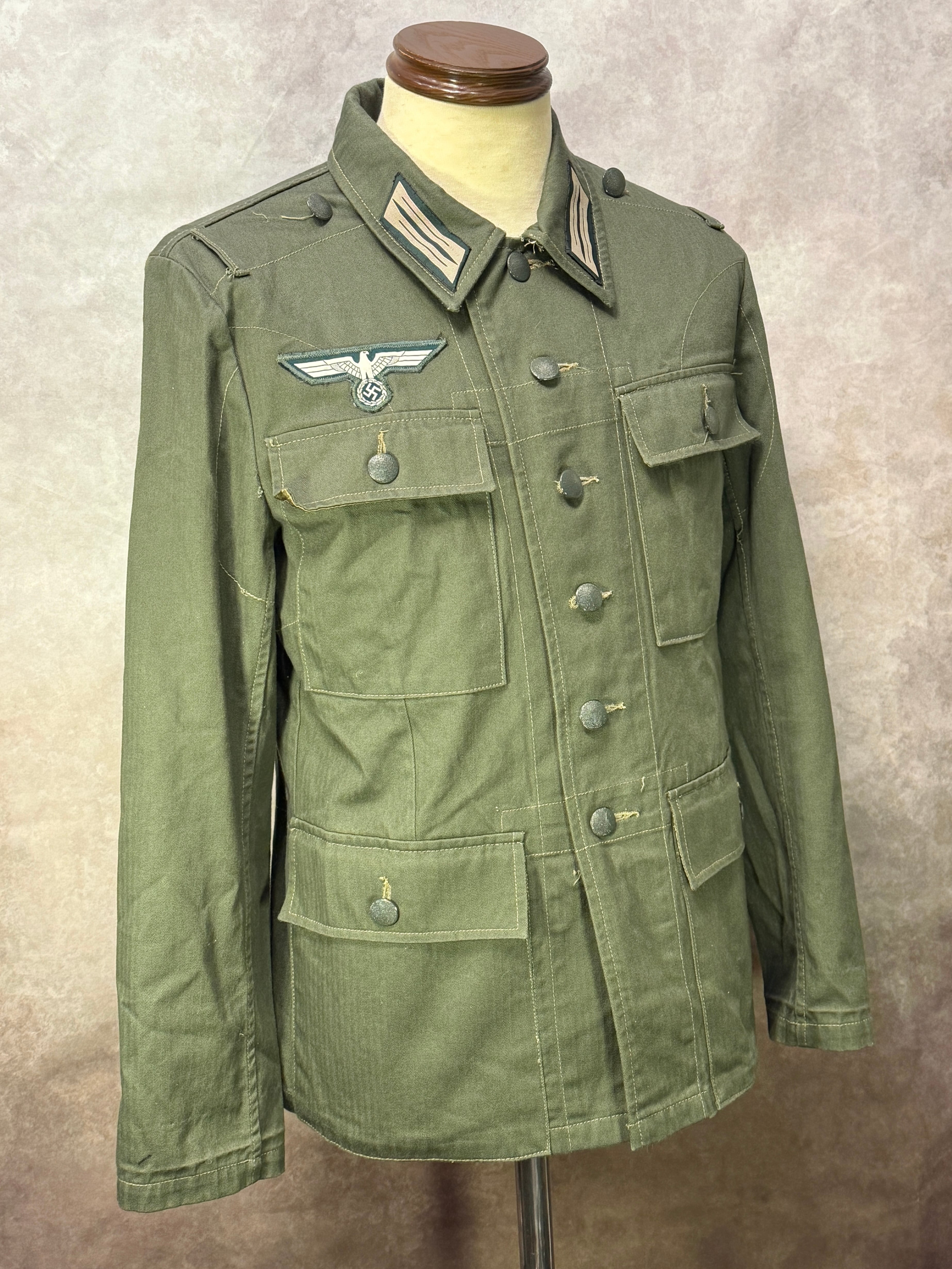 第二次世界大戦ドイツ軍の国防軍徽章つきのHBT M43野戦服です。