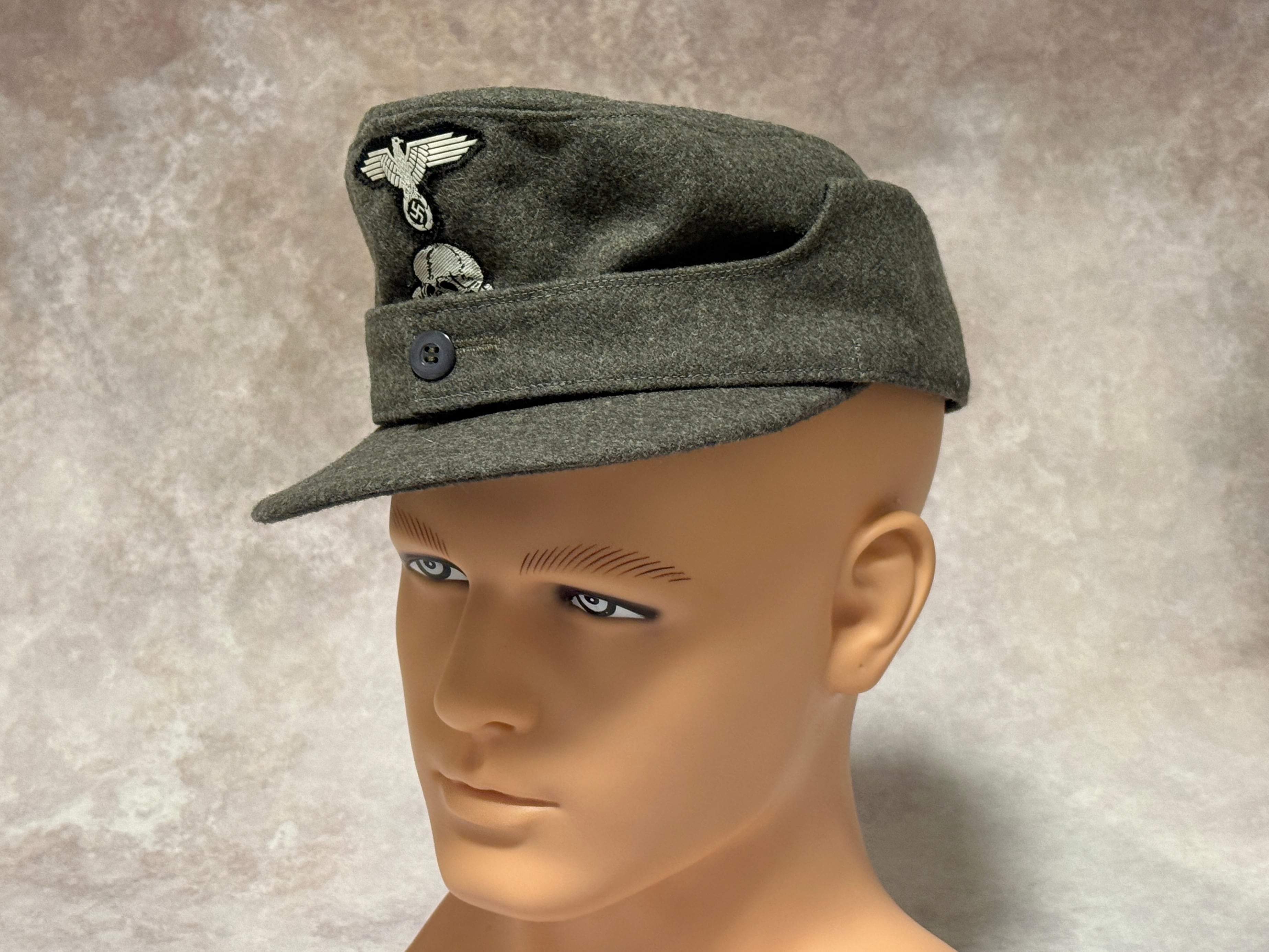 第二次世界大戦ドイツ軍SSM型43規格帽の徽章付き高品質リプロダクションモデル。